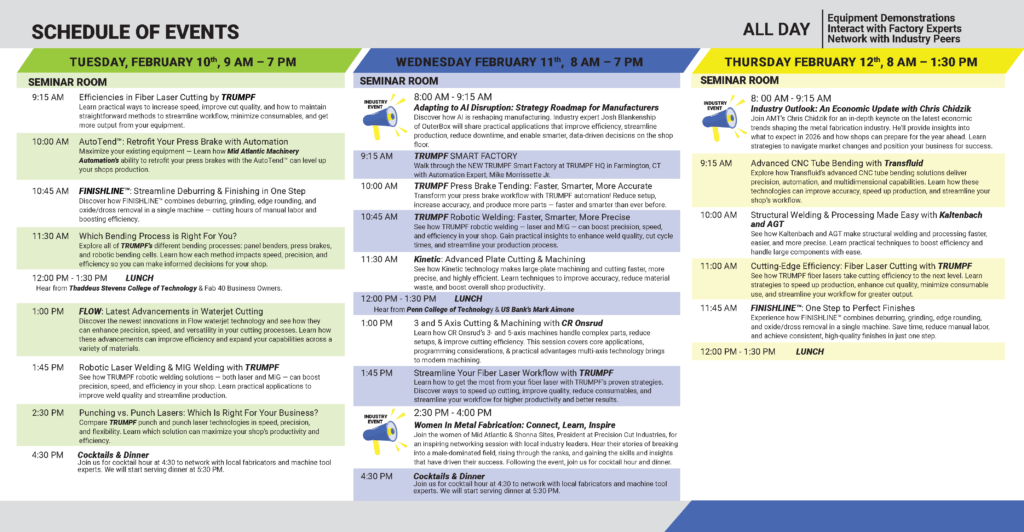 Industry Outlook: An Economic Update with Chris Chidzik Join AMT’s Chris Chidzik for an in depth keynote on the latest economic trends shaping the metal fabrication industry. He’ll provide insights into what to expect in 2026 and how shops can prepare for the year ahead. Learn new strategies to navigate the market changes and how to position your business for success. |
